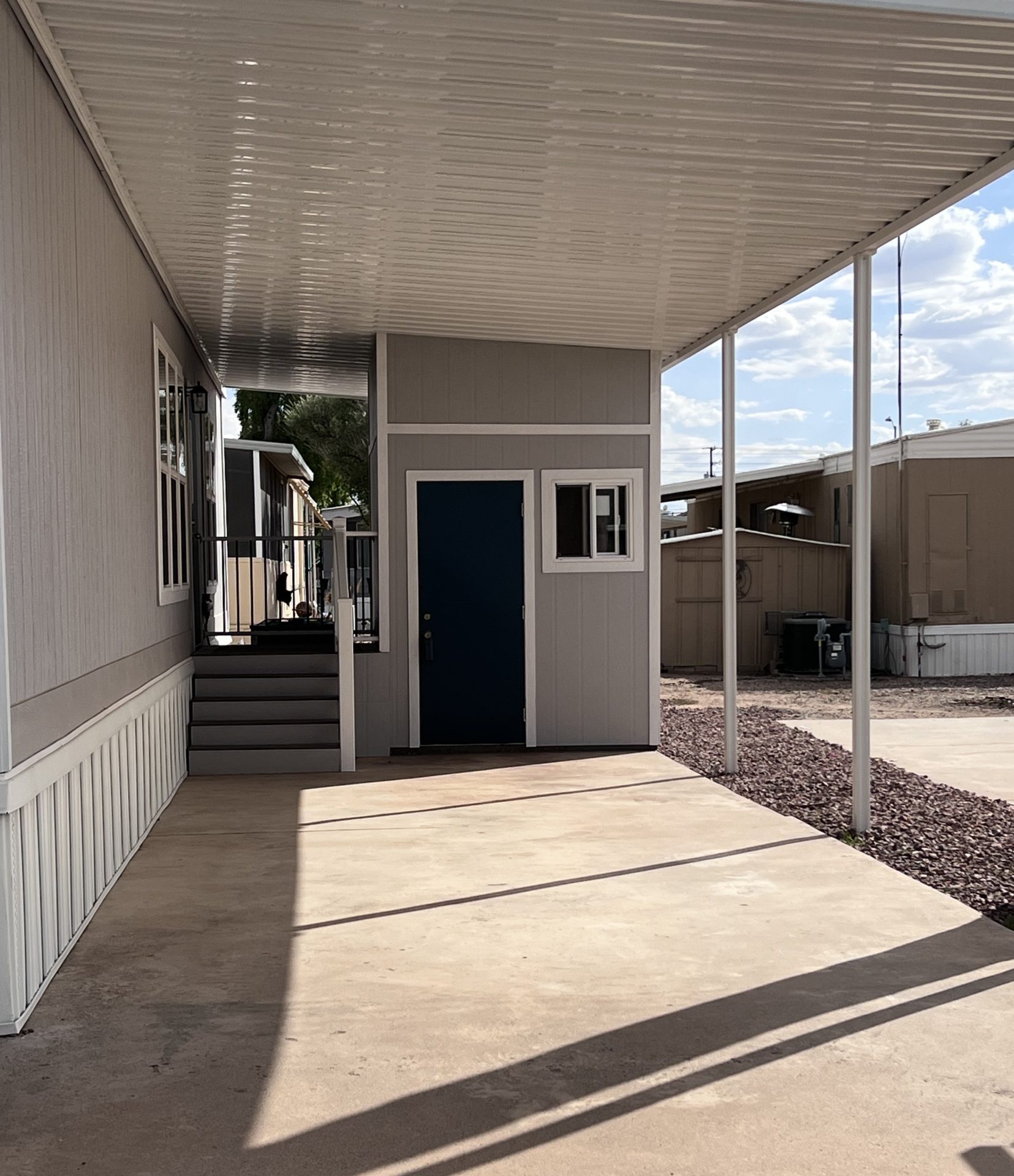 This brand new home is thoughtfully designed for modern living and comfort. The interior features sleek cabinetry, durable hard flooring throughout, brand-new appliances including a stacked washer/dryer, energy-efficient windows, and a smart thermostat. The spacious master suite boasts double sinks in the bath, while the versatile secondary room is perfect for guests or a home office. Outside, you'll find a Trex deck, custom storage shed, and a large carport awning. Plus, you can customize your landscaping and paint package to truly make it your own! Winchester is on its way to becoming Casa Grande's premier 55+ community. Enjoy the heated pool, and exceptional amenities like pickleball and bocce courts, and dog park.